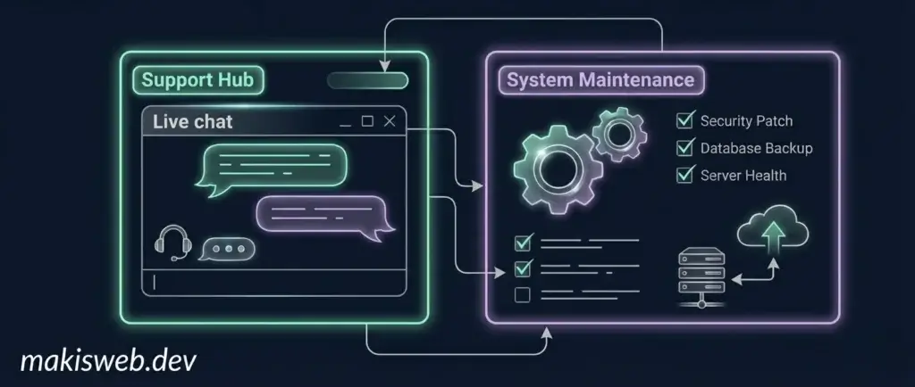 Μετά το launch δεν εξαφανίζομαι. Μπορούμε να συνεχίσουμε με πακέτο συντήρησης WordPress, ώστε να γίνονται updates, backups και διορθώσεις χωρίς να αγχώνεσαι κάθε φορά που κάτι χαλάει ή αλλάζει.